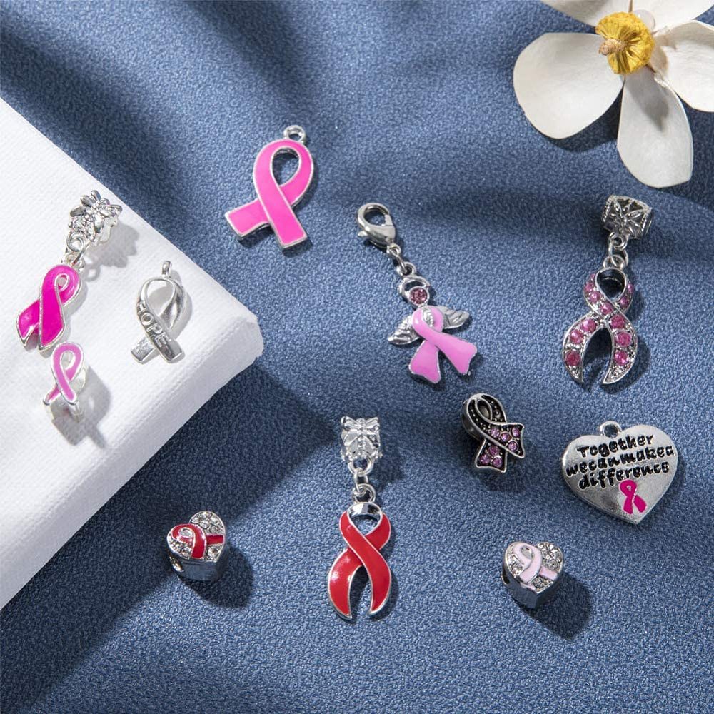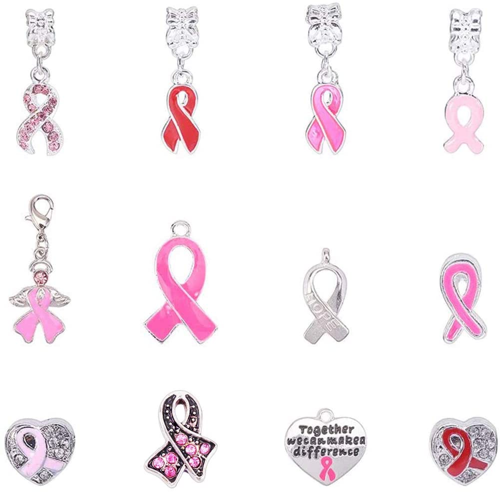 This 11‑piece mixed‑style pendant set features a variety of awareness ribbon charms and coordinating alloy pendants in assorted shapes, colours, and sizes. Each charm is crafted from durable alloy with smooth detailing and clean holes for easy attachment to bracelets, necklaces, keychains, zipper pulls, bag charms, and craft‑market jewellery.