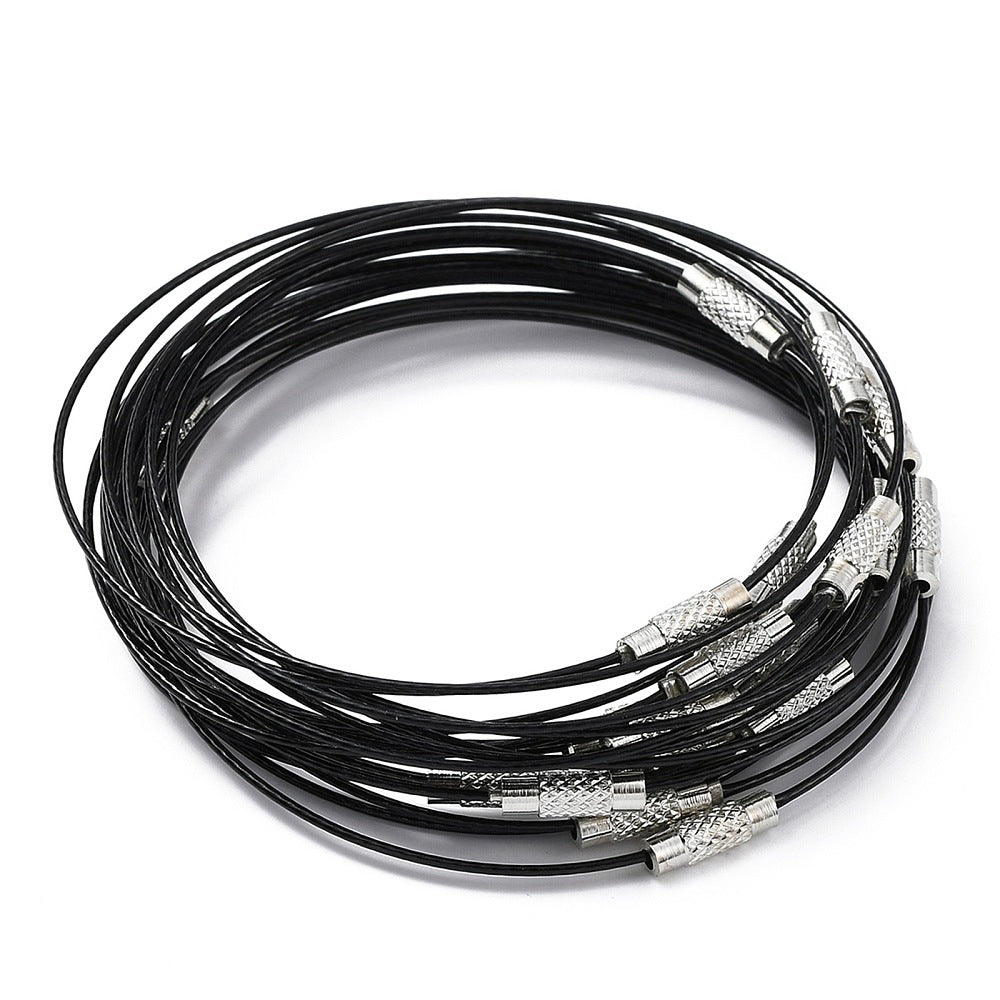 Black Steel Wire Bracelet Cords – Durable Jewelry Base with Alloy Screw Clasp & Ring