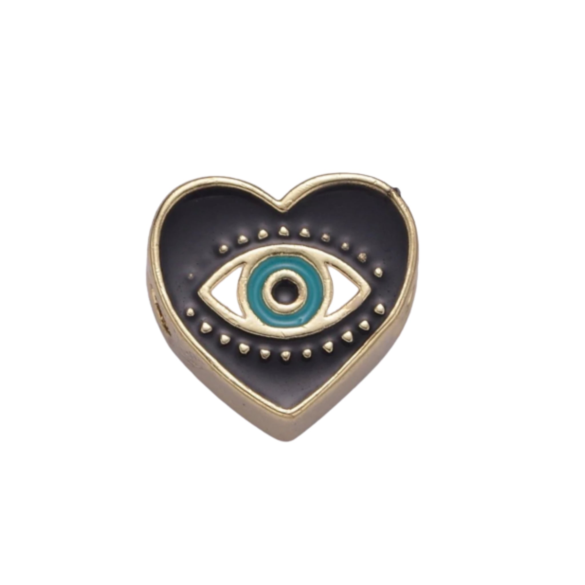 Boho Evil Eye Heart Shaped Spacer Beads – 12mm Zinc Alloy Enamel Charms (Pack of 10)