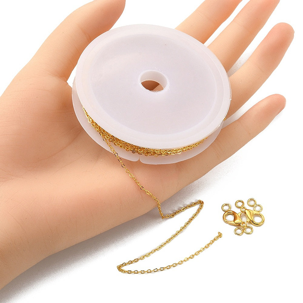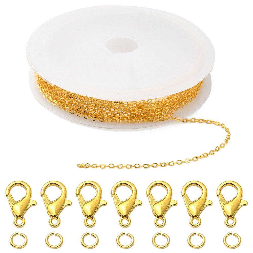 DIY Chain Bracelet & Necklace Kit – Brass Heart Link Chains, Jump Rings & Golden Lobster Clasps