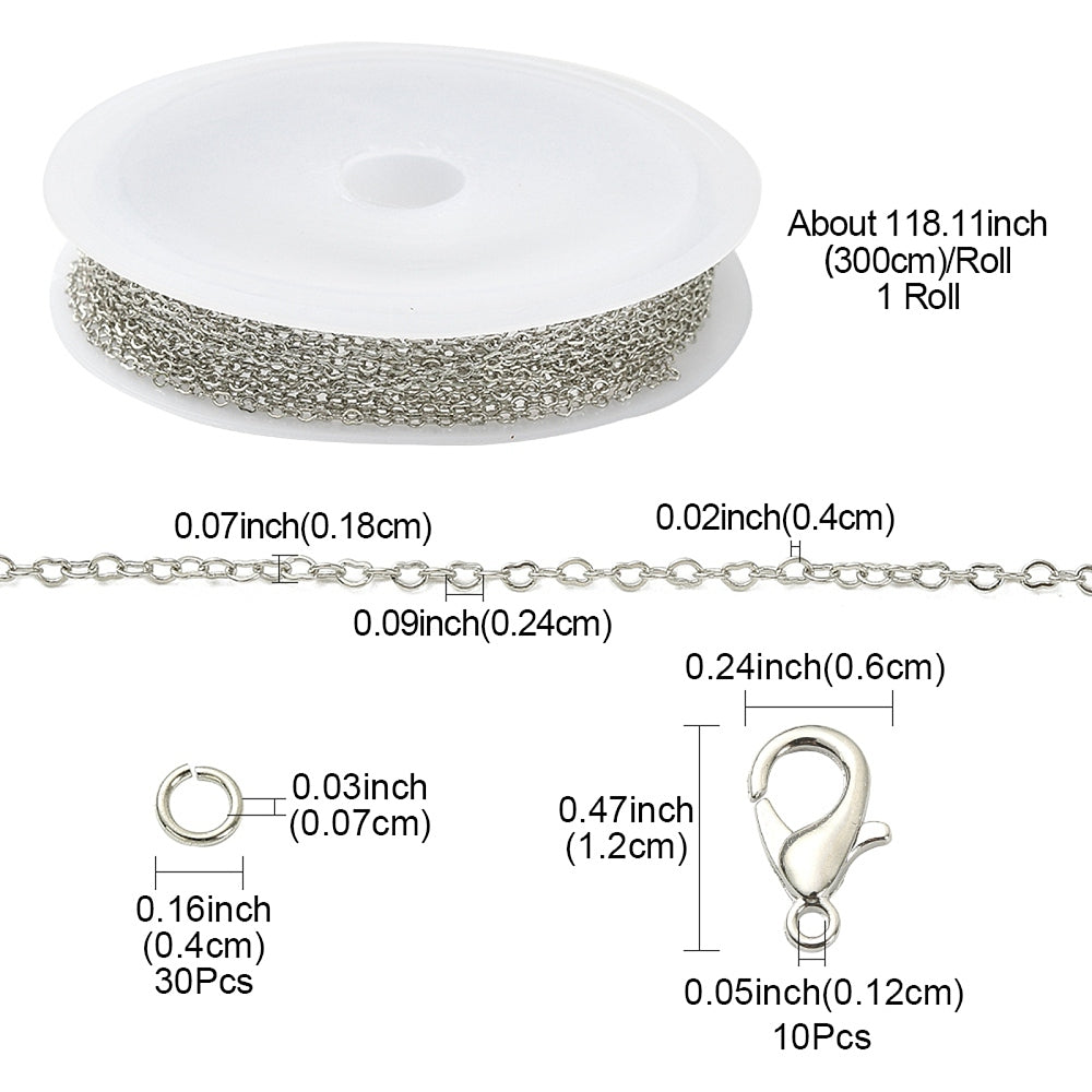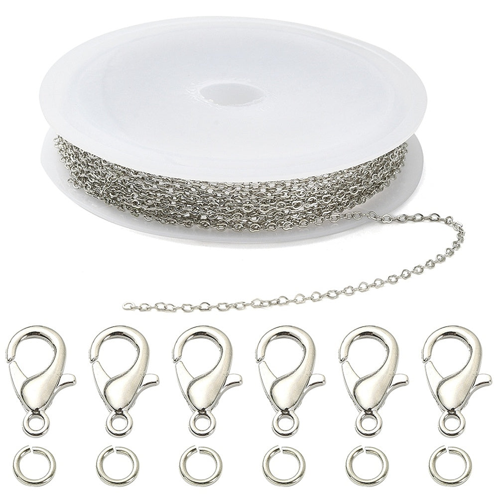 DIY Chain Bracelet & Necklace Kit – Brass Heart Link Chains, Jump Rings & Platinum Lobster Clasps