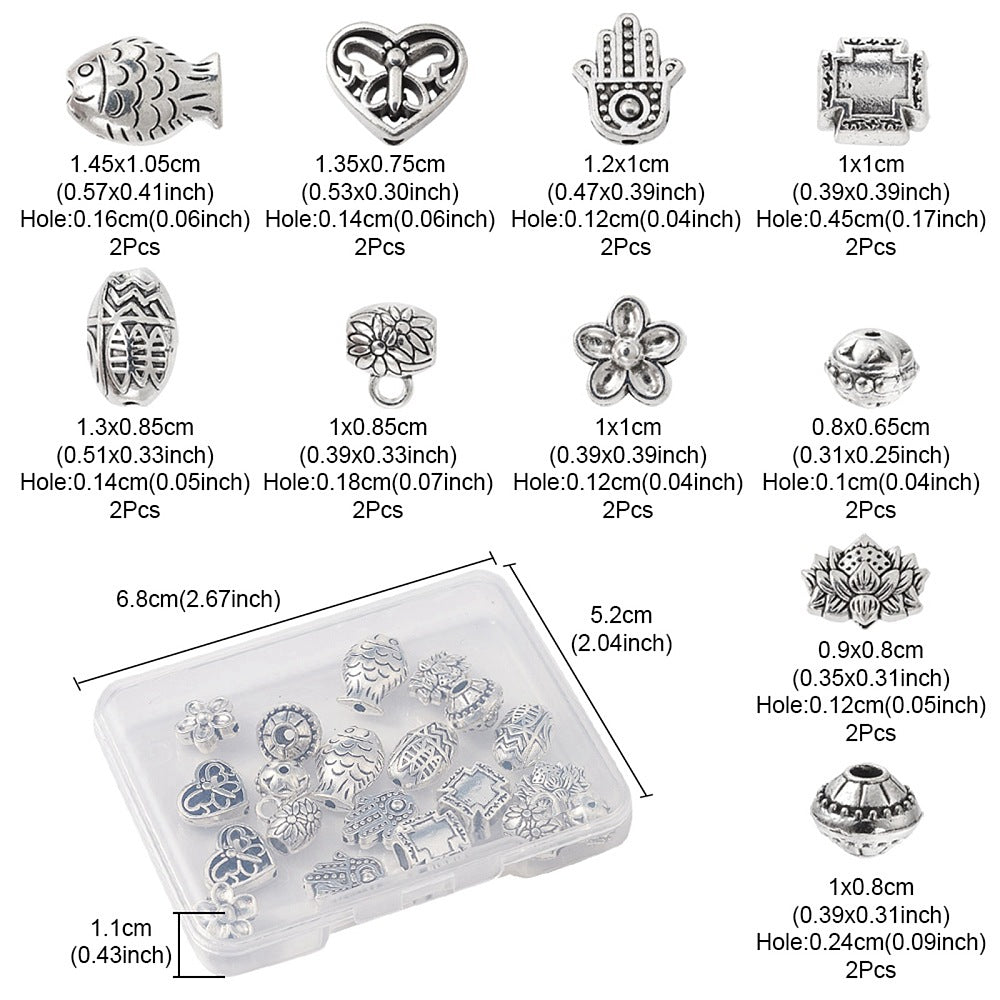 DIY Jewelry Making Finding Kit – 20‑Piece Mixed Alloy Beads & European Beads Set, Bicone, Lotus, Fish, Butterfly & Hamsa Hand, Antique Silver