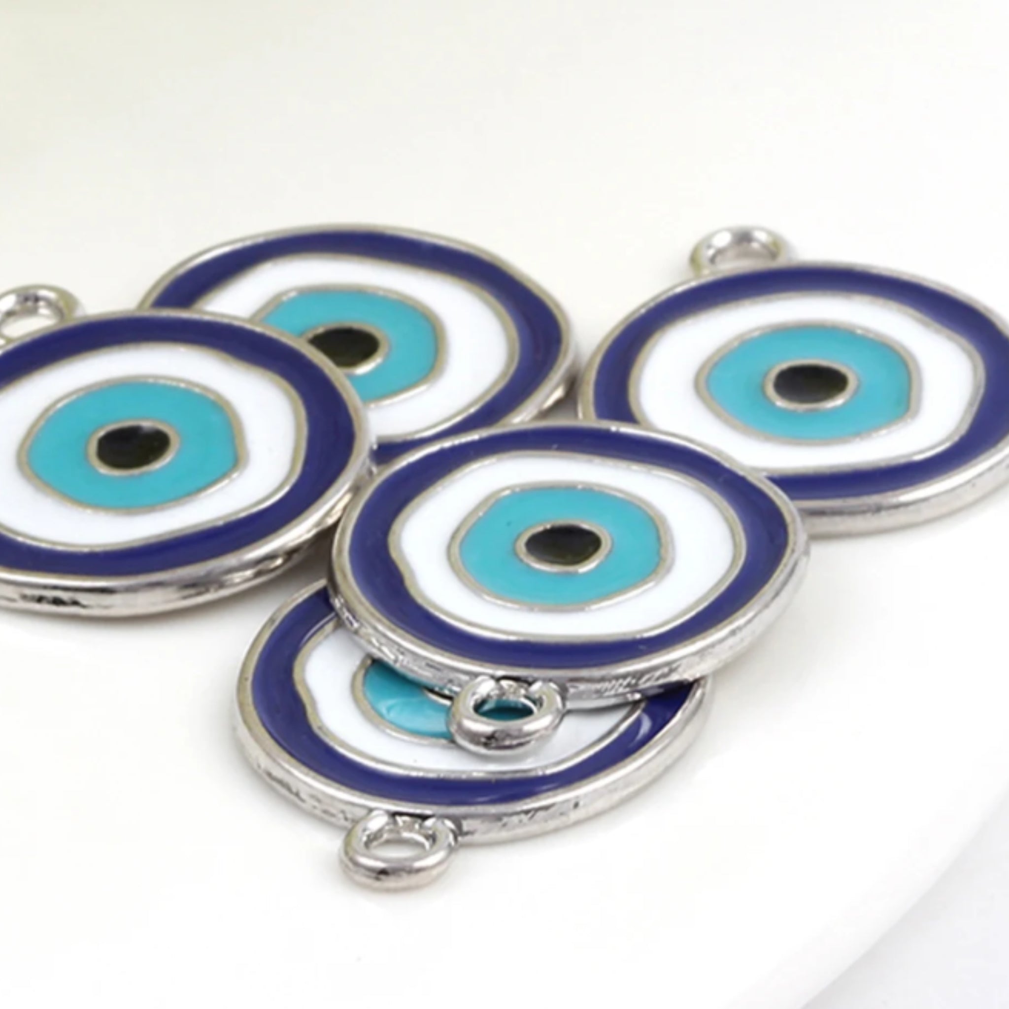 Evil Eye Charms – Silver Zinc Alloy Coins (23×20mm) | Blue & Pink Rings for DIY Jewelry