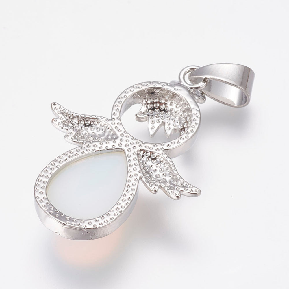 Opalite Angel Pendants – Angel Shape with Brass Finding, Platinum Finish