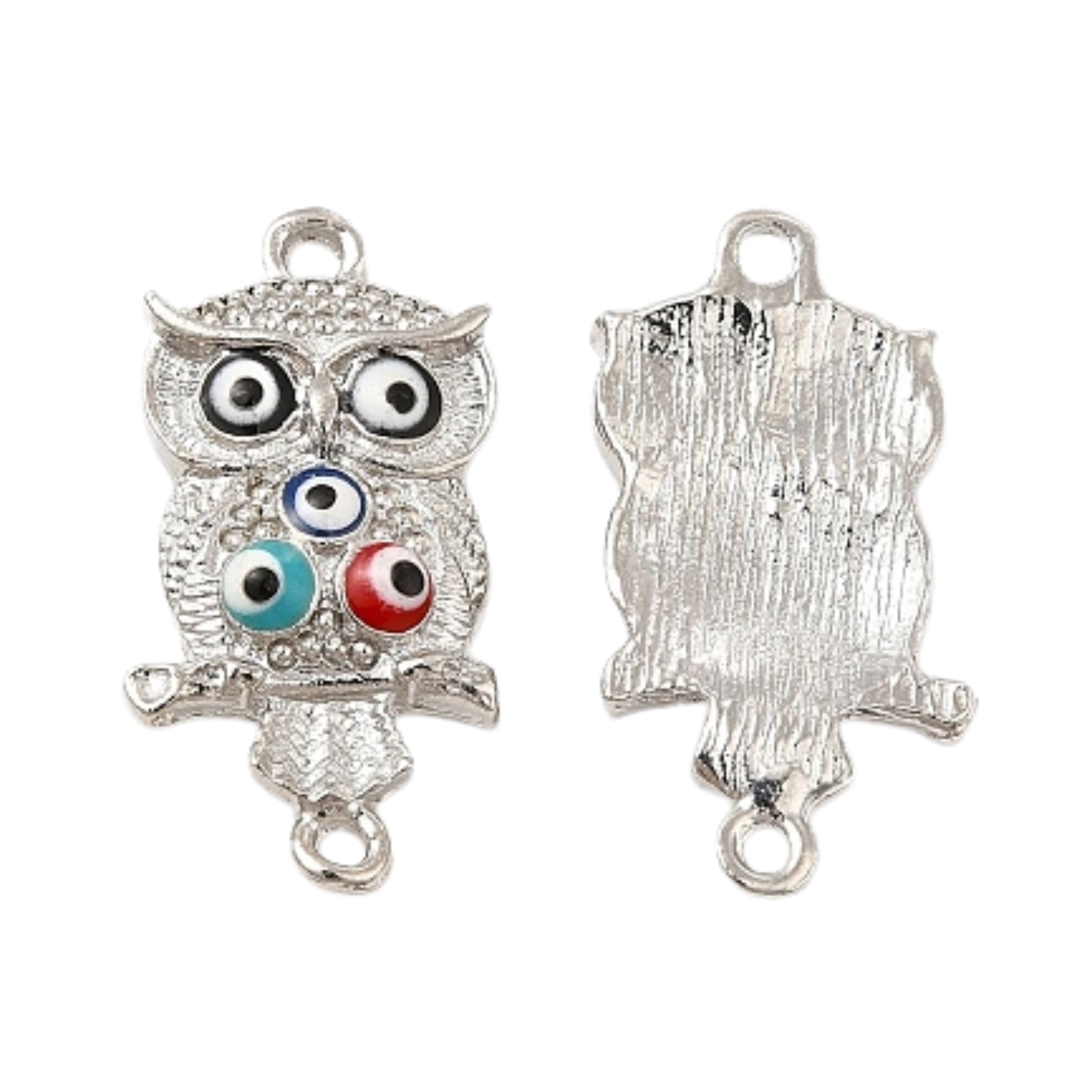 Owl Evil Eye Connector Charm – Nickel-Plated Enamel Alloy Link (25×13mm)