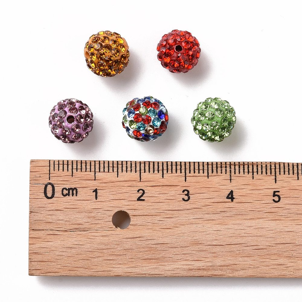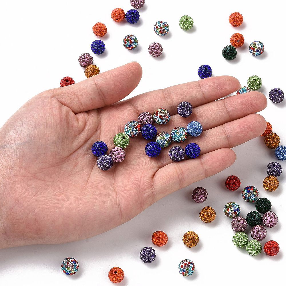 Pave Disco Ball Beads – Grade A Polymer Clay Rhinestone Beads, Mixed Colours, 10mm Round