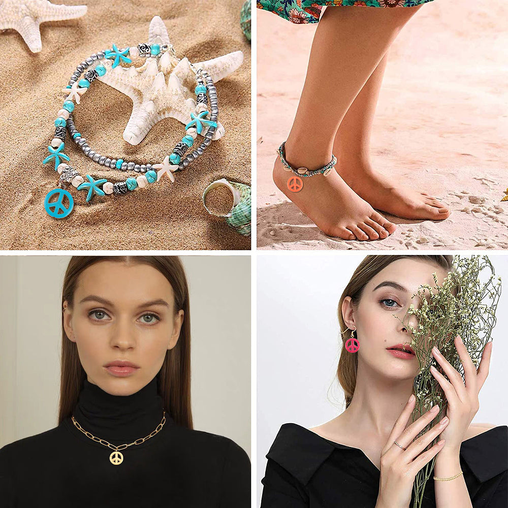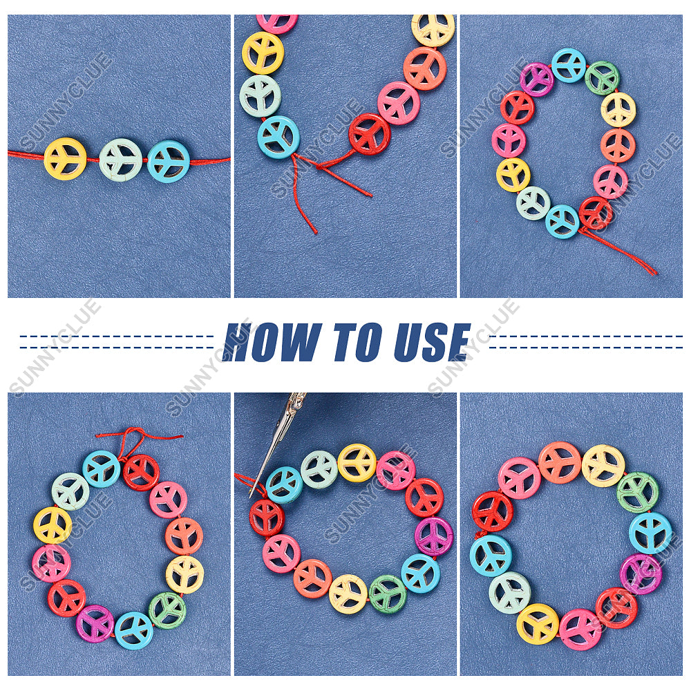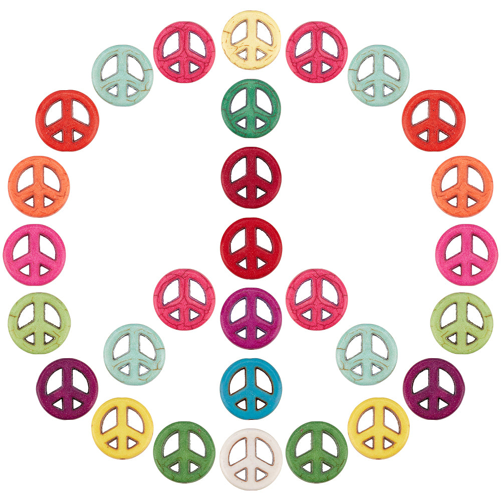 - Mixed‑colour synthetic turquoise peace‑sign beads