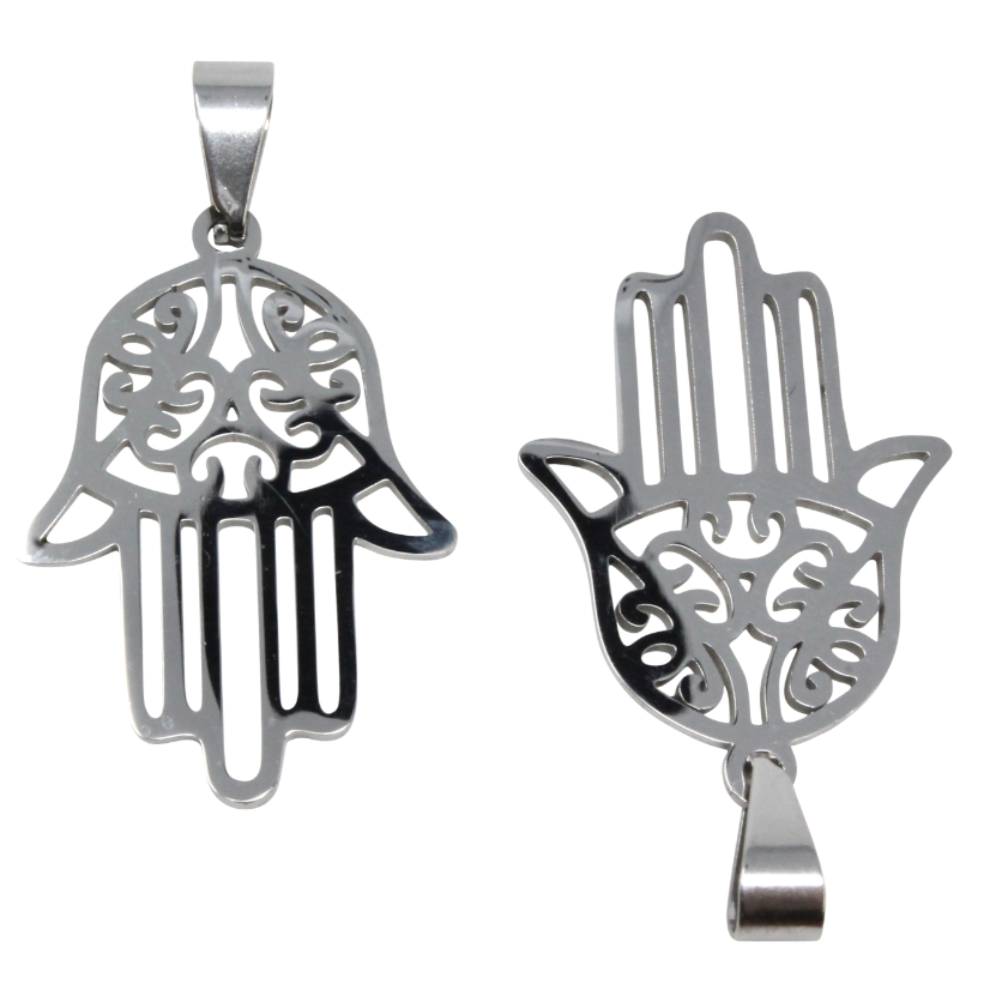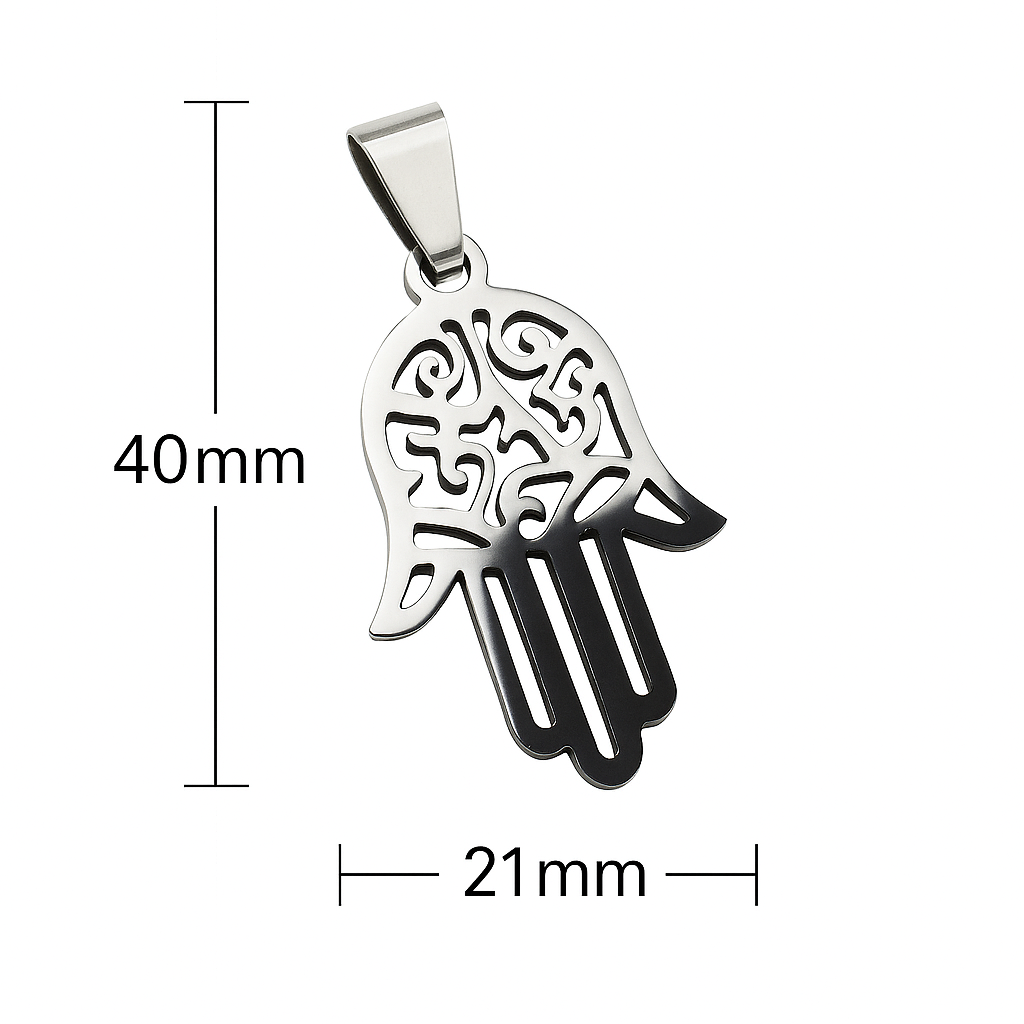 Bring meaning, durability, and modern style to your handmade jewelry with this 40×21 mm Stainless Steel Hamsa Hand Pendant. The Hamsa is a well‑known symbol of protection, luck, and positive energy, and this version features elegant cut‑out detailing that gives it a refined, lightweight feel while maintaining a polished, premium look.