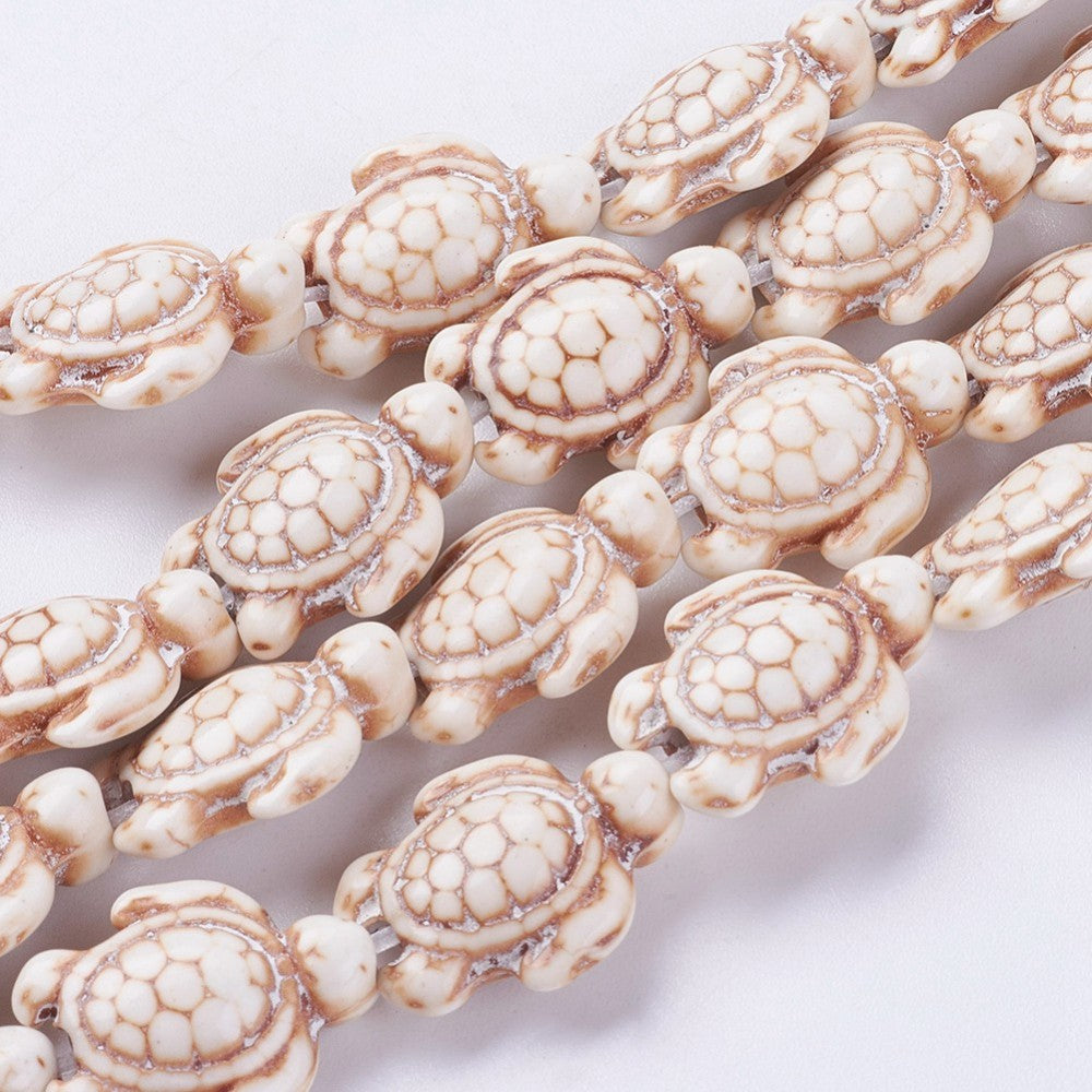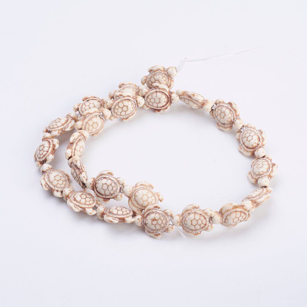 Synthetic Turquoise Turtle Bead Strand – Dyed & Heated, Antique White